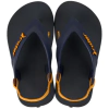 A palmilha possui textura antiderrapante e formato anatômico, oferecendo maior estabilidade e conforto ao caminhar. O solado leve e resistente proporciona excelente aderência em diferentes superfícies, sendo perfeito para passeios, momentos de lazer ou uso diário. A combinação das cores azul marinho com detalhes em laranja traz um visual vibrante e cheio de atitude.