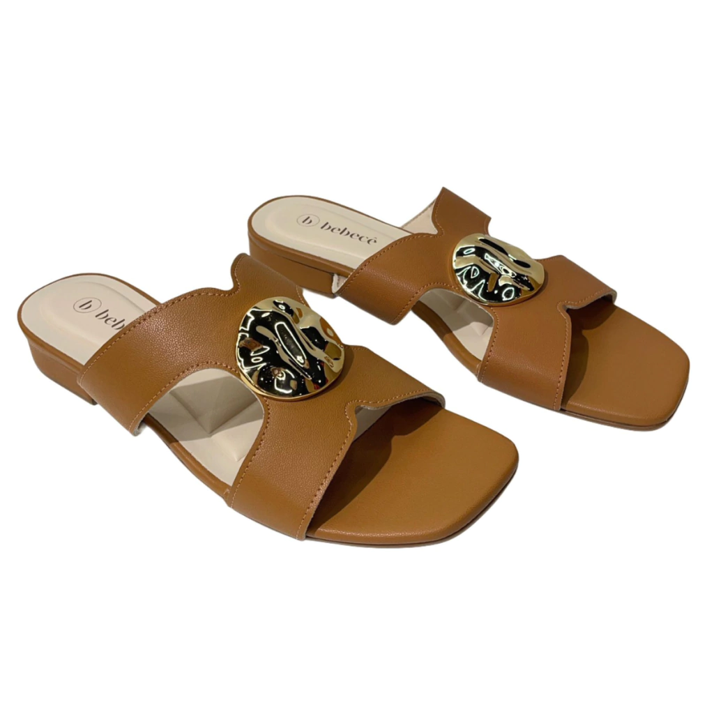 Rasteira Feminina Bebecê com Detalhe Dourado – Caramelo