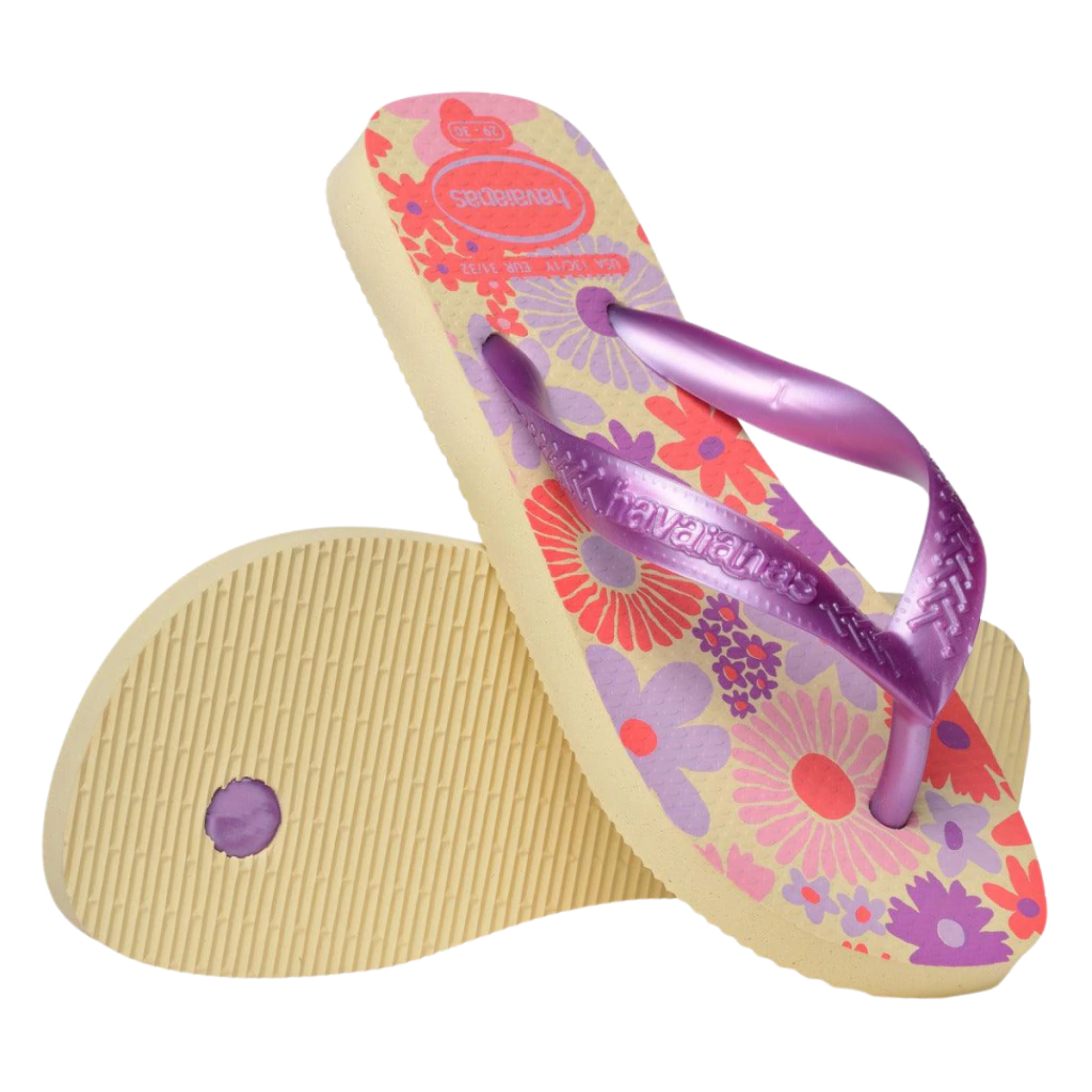 Sandálias Havaianas Kids Flores Buttercream: O Jardim Encantado de Cores Suaves e Brilho para Sua Pequena!