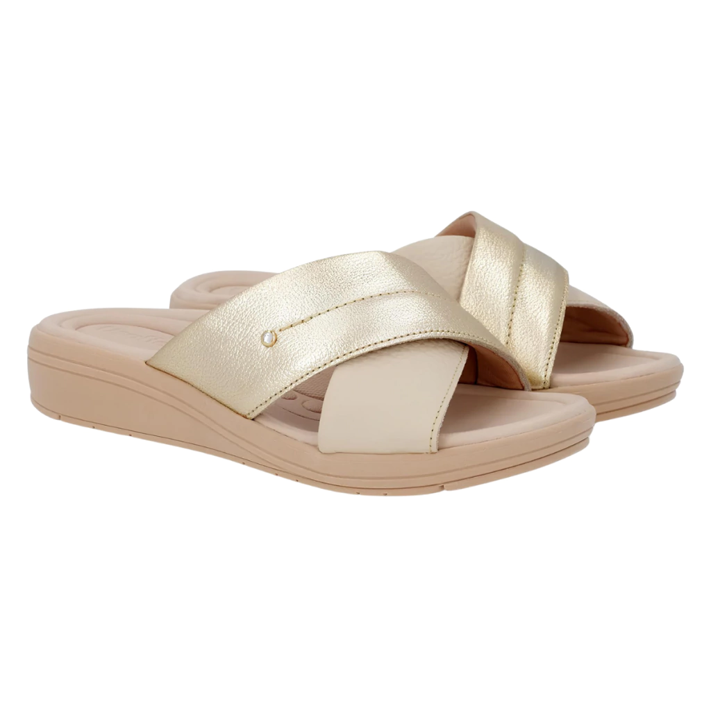Tamanco Usaflex em Couro Ouro Light: Conforto e Elegância Radiante para Seus Pés!