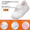 Com design moderno e detalhes encantadores, esse modelo combina estilo com funcionalidade. Suas combinações de cores suaves e divertidas tornam o visual ainda mais fofo, enquanto o sistema de calce fácil com tiras autocolantes garante praticidade tanto para as crianças quanto para os pais.