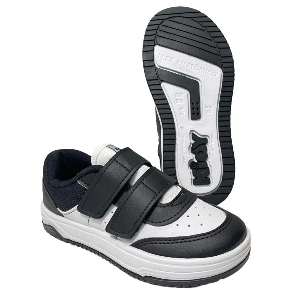 Esse tênis infantil é a escolha ideal para meninos que precisam de conforto e segurança em cada passo. Com visual moderno nas cores preto e branco, o modelo combina facilmente com diversos looks do dia a dia.
