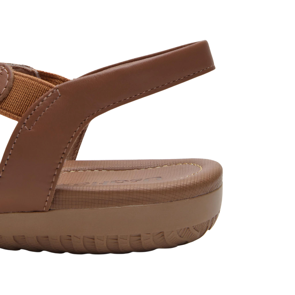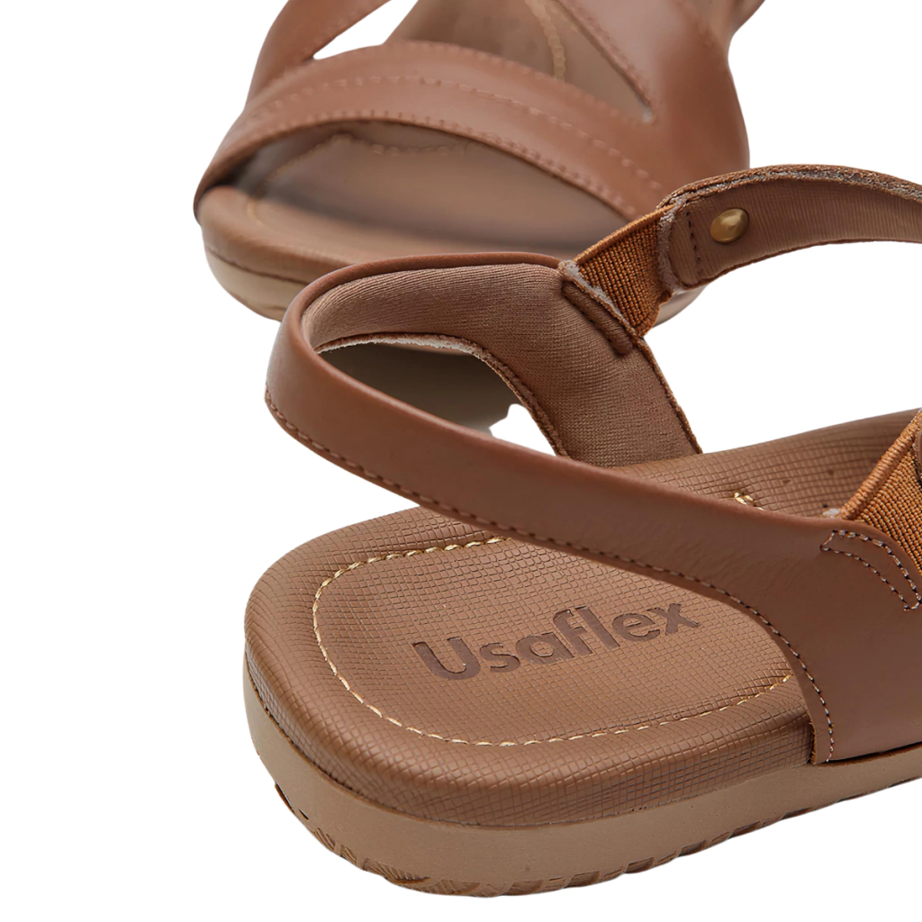 Sandália em Couro Marrom Camel com Elástico: Conforto Ergonômico e Estilo Versátil para Seus Pés!